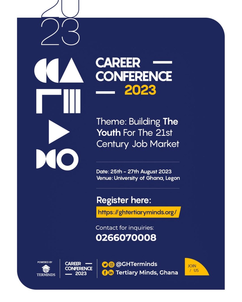 The program is aimed at building and developing the professional competencies of tertiary students and young graduates in Ghana to meet the 21st century job market demands. The focus of the Career Conference is to provide participants with self-development and leadership training through lectures, seminars, workshops, dialogues, team-building, entrepreneurship group project.